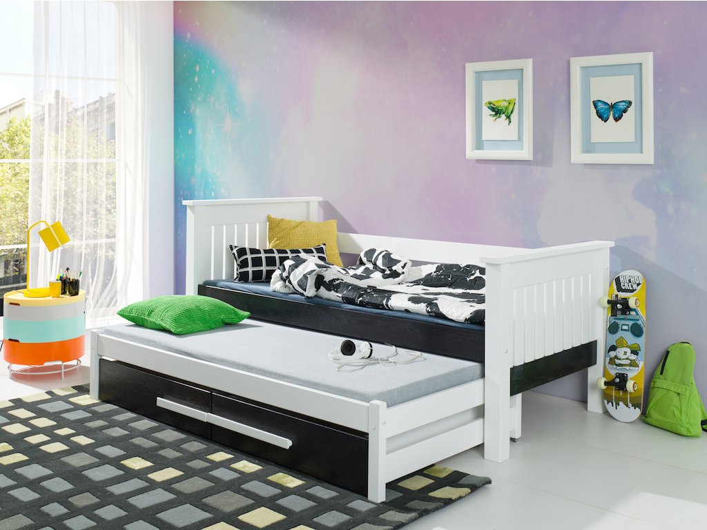 Výhodou této postele je i výsuvné lůžko, které se hodí vždy , když přijde kamarád nebo kamarádka a rozhodne se u nás přenocovat.